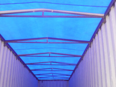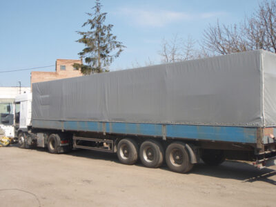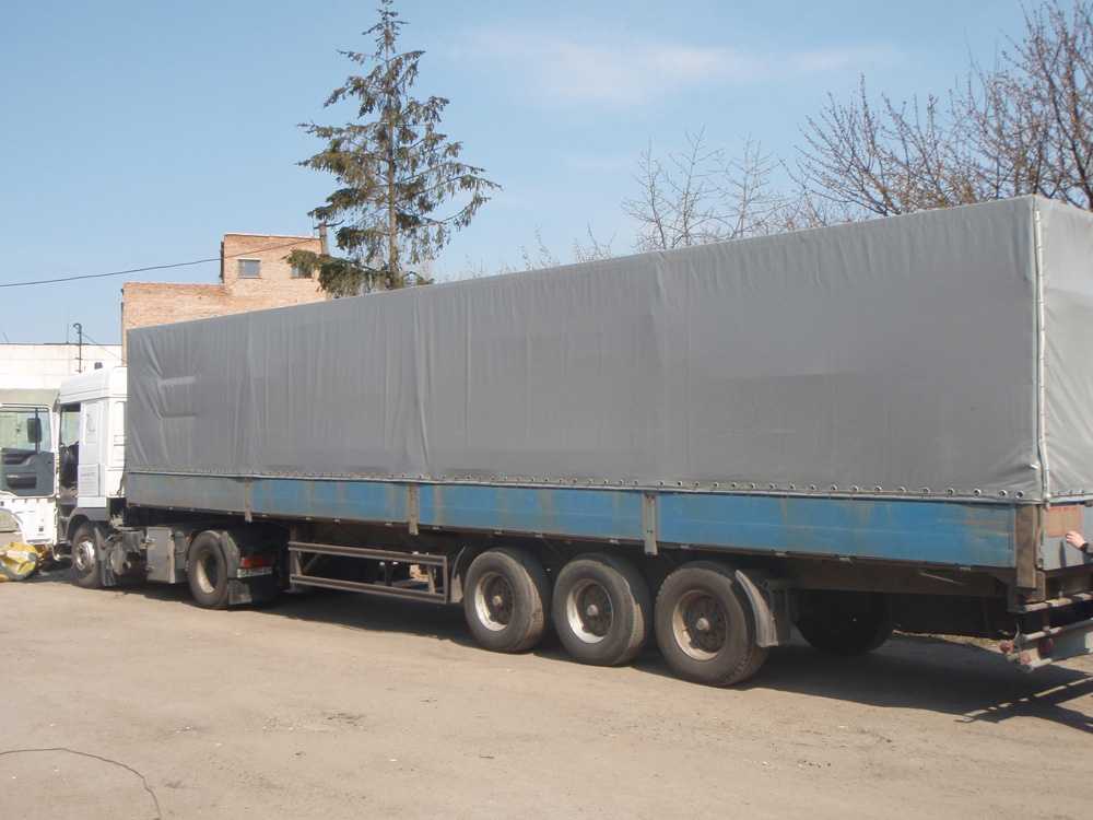Накидка з ПВХ матеріалу для великого транспортного засобу стійка до будь-яких проявів погоди: холоду, снігу, спеки … До того ж щільна тканина тенту не дозволяє рідини і частинкам піску проникне всередину кузова і зіпсувати вантаж, захищаючи його.