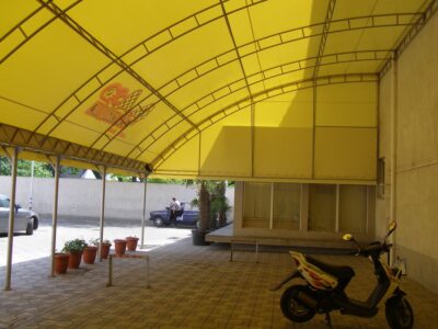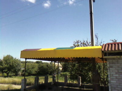 При укритті дачних конструкцій або торгових наметів, що працюють цілий рік, перевага надається тентам із ПВХ. Такий матеріал досить міцний і вистоє навіть за сильних коливань температури. ПВХ зможе захистити вас і від сонця, і від зливи, і від сильного снігопаду. Не варто турбуватися про дизайн: навісу завжди можна підібрати забарвлення, яке ідеально впишеться в колірну гаму будівлі.