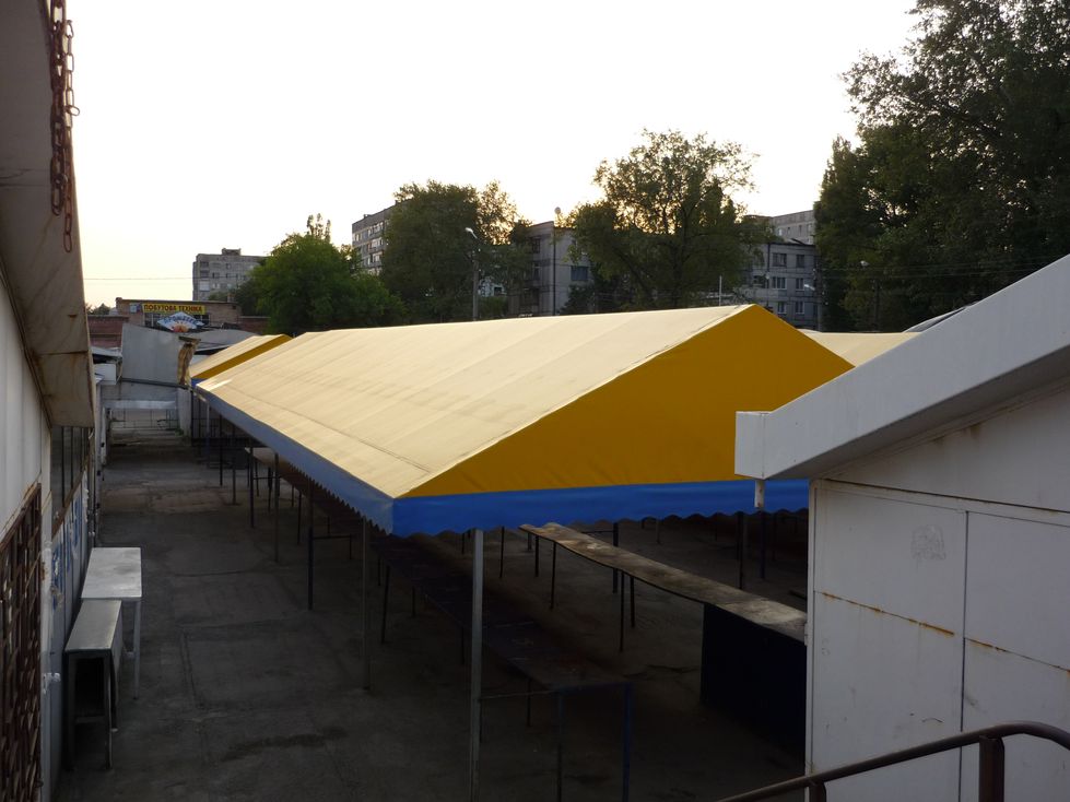 Покриття виготовляють із різної сировини. До уваги приймаються цілі та умови використання. Наприклад, тканинний тент хороший для теплої та сонячної пори року. А для торгового намету, що працює цілий рік, найкраще вибрати матеріал на кшталт ПВХ. Він досить міцний і без проблем перенесе зливу чи сильний снігопад.