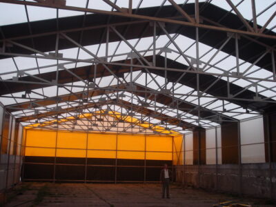 - Ангари, де зберігають урожай зернових або спецтехніку, що використовується у сільському господарстві.