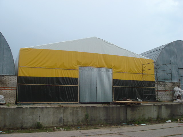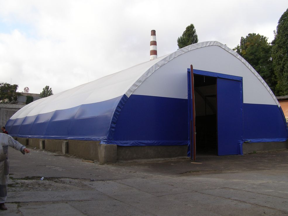- Ангари від нашої компанії «Тенти Плюс» служать цілий рік протягом багатьох років. Їм не страшні сильні морози та спекотне літо. Основа покривається антикорозійним розчином, який перешкоджає іржі, від чого страждають і руйнуються споруди з металу. Тканина ПВХ не деформується, не пропускає вологу та не лопається під час навантажень.
