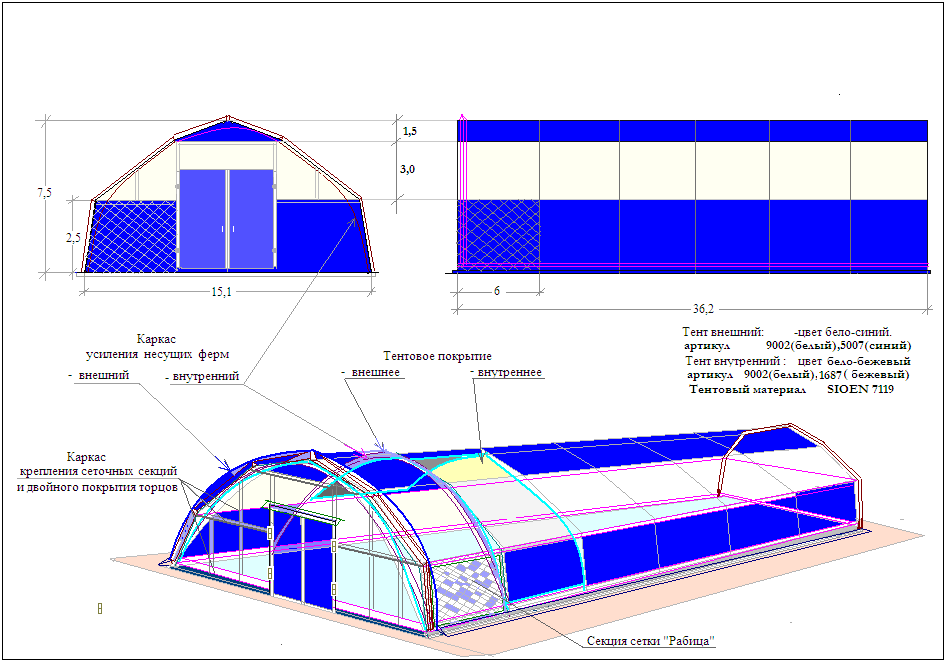 - Ангари у спортивній сфері для захисту під час проведення футболу, тенісу, волейболу, боулінгу, верхової їзди, занять плаванням у басейні.